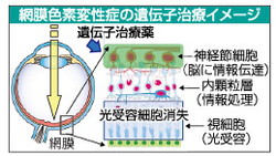 網膜色素変性症は、網膜の視細胞が障害を受けて視力が低下し最終的には失明に至る難病で、数千人に1人発症するとされている。これまで確実に進行を止める治療法は確立されていない。