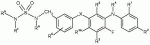 で示される置換されたハロフェノキシベンズアミド誘導体化合物、該化合物の調製方法、該化合物を含む組成物および組み合わせ物ならびに単独の物質としてまたは他の活性成分と組み合わせて、疾患、特に、過剰増殖性疾患および/または血管新生疾患の処置または予防のための医薬組成物の製造における該化合物の使用に関する。