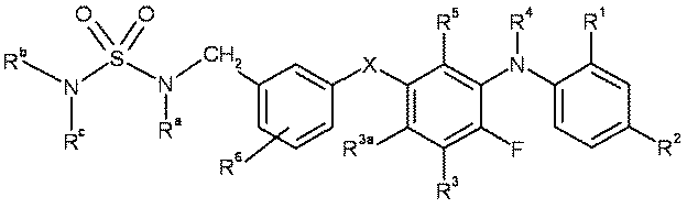 [式中:R1、R2、R3、R3a、R4、R5、R6、Ra、Rb、Rc、およびXは、特許請求の範囲に定義のとおりである]