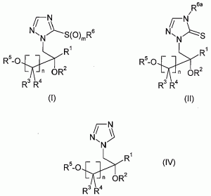 抗菌性1,2,4-トリアゾリル誘導体 Posted on 2012/11/30 by bio 【公表番号】特表2012-530110 【公表日】平成24年11月29日(2012.11.29) 【出願人】ビーエーエスエフ ソシエタス・ヨーロピア 【要約】 本発明は、下に定義する通りの式(I)、(II)および(IV)の新規のトリアゾール化合物、それらを含む農薬および医薬組成物、ならびにそれらの殺菌剤、抗真菌薬、抗ガン薬および抗ウイルス薬としての使用に関する。