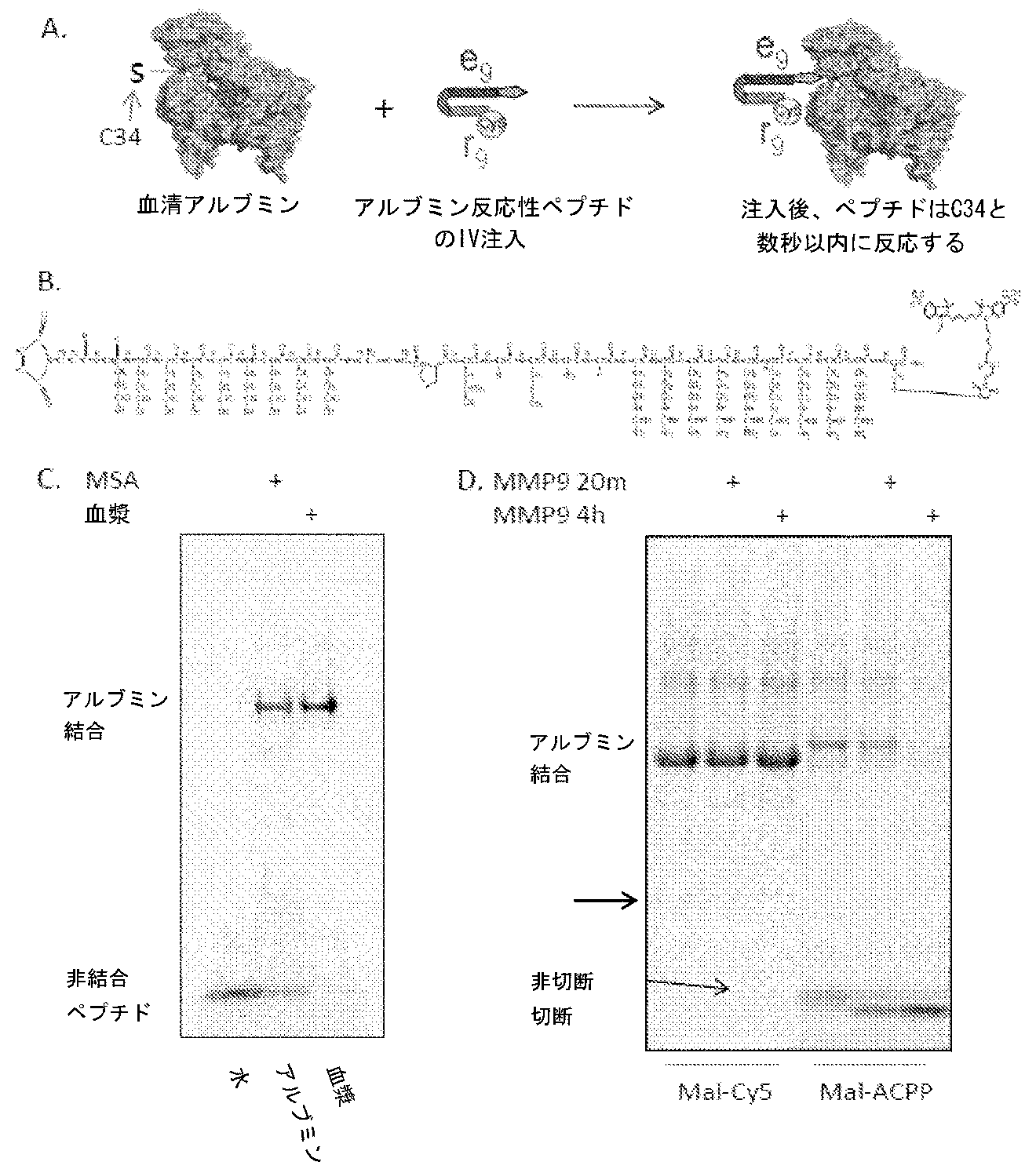 本明細書の特定の実施形態では、インビボ循環の増加した選択的輸送分子が開示される。一部の実施形態では、本明細書で開示される選択的輸送分子は、式(A-X-B-C)-Mを有し、式中、Cは積荷成分であり;Aは5~9個の連続した酸性アミノ酸を含む配列を有するペプチドであり、該アミノ酸はアスパルタートおよびグルタマートから選択され;Bは5~20個の連続した塩基性アミノ酸を含む配列を有するペプチドであり;Xはリンカーであり;かつMは高分子キャリアである。