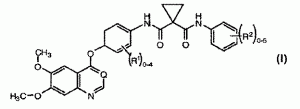 またはその薬学的に許容される塩もしくは溶媒和物を、他の癌処置と組み合わせて投与することによって癌を処置する方法が記載されており、式中、R1は、ハロであり、R2は、ハロであり、Qは、CHまたはNである。式Iの化合物は、発明の詳細な説明に定義されているように、処置の必要な患者に、テモゾロミド(TMZ)および/または放射線治療(RT)のいずれかおよび場合により1種以上のさらなる処置と組み合わされて投与され、1種以上のさらなる処置は、発明の詳細な説明に記載されている通りである。