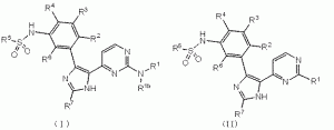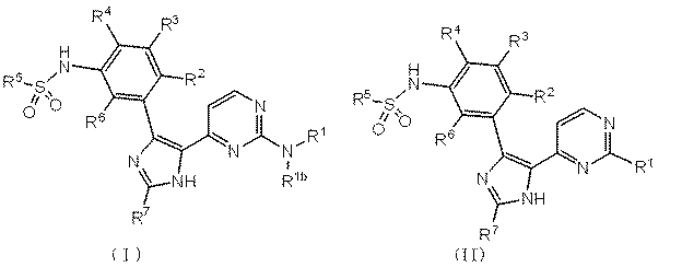 タンパク質キナーゼ阻害剤としての化合物および組成物 Posted on 2013/02/07 by bio 【公表番号】(11)【公表番号】 【公表日】平成25年1月31日(2013.1.31) 【出願人】ノバルティス アーゲー 【要約】 本発明は式(I)または(II): 〔式中、R1、R1b、R2、R3、R4、R5、R6およびR7はここに定義する。〕 の化合物を提供する。式(I)または(II)の化合物およびその医薬組成物はB-Raf関連疾患の処置に有用である