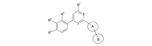 (式中、X又はYのいずれか一方が、Nであり、かつもう一方が、CHであるか、あるいはX及びYの両方が、Nであり;Aは、アリール又は5員若しくは6員ヘテロアリールであって、そのそれぞれは、場合によりC1-6-アルキルによって置換されており;Bは、H、シアノであるか、あるいは場合により置換されているアリール又は場合により置換されている5員若しくは6員ヘテロアリールである。)