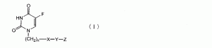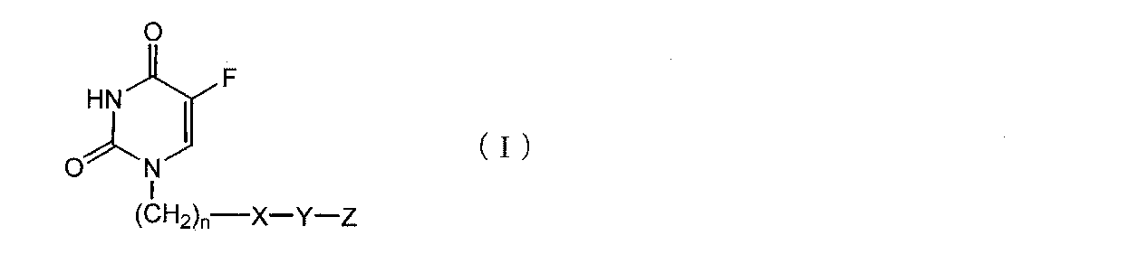 (一般式(I)中、nは1~3の数を示し、Xは、酸素原子、硫黄原子、炭素数2~6のアルケニレン基等を示し、Yは、炭素数1~8のアルキレン基を示し、Zは、-SO2NR1R2、-NR3SO2-R4等を示し、R1及びR2は、水素原子、炭素数1~6のアルキル基又はアラルキル基を示すか、或いは隣接する窒素原子と一緒になって、飽和複素環基を形成する基を示し、R3は、水素原子又は炭素数1~6のアルキル基を示し、R4は、芳香族炭化水素基又は不飽和複素環基を示し、R5は、メチル基を示す。)で表される5-フルオロウラシル化合物又はその塩。